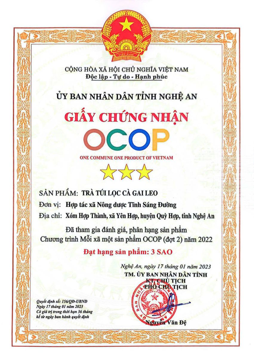 Sản xuất tại : Hợp tác xã Nông dược Tĩnh Sáng Đường