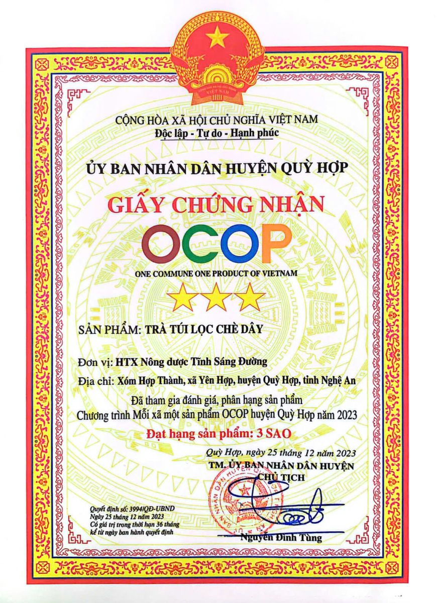 CƠ SỞ TỰ CÔNG BỐ SẢN PHẨM TRÀ TÚI LỌC CHÈ DÂY