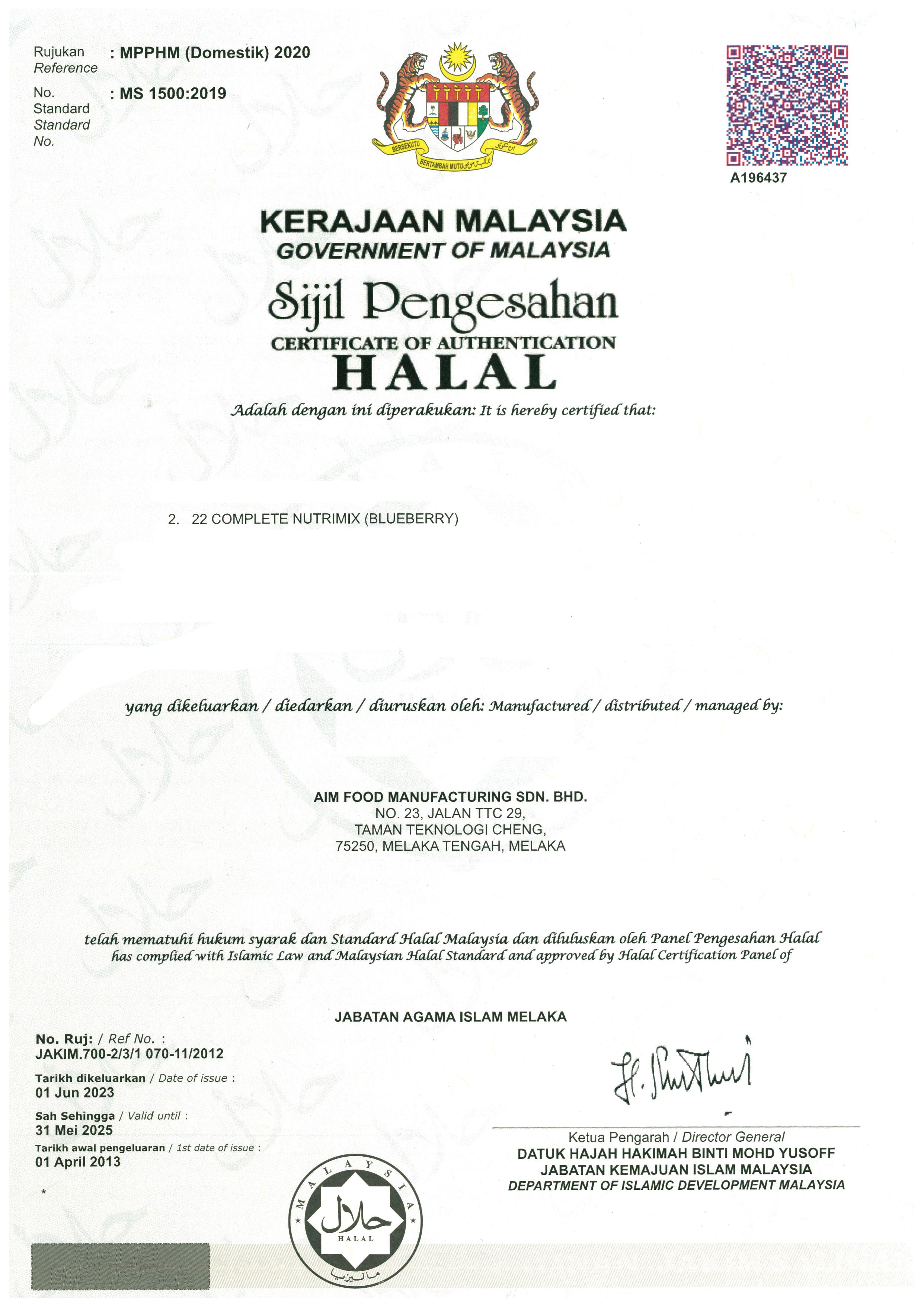 Bột ngũ cốc dinh dưỡng 22 Complete Nutrimix - Blueberry (Việt quất) là sản phẩm được ưa chuộng nhất tại thị trường nội địa Singapore, cũng như trên nhiều quốc gia lãnh thổ khác trên thế giới