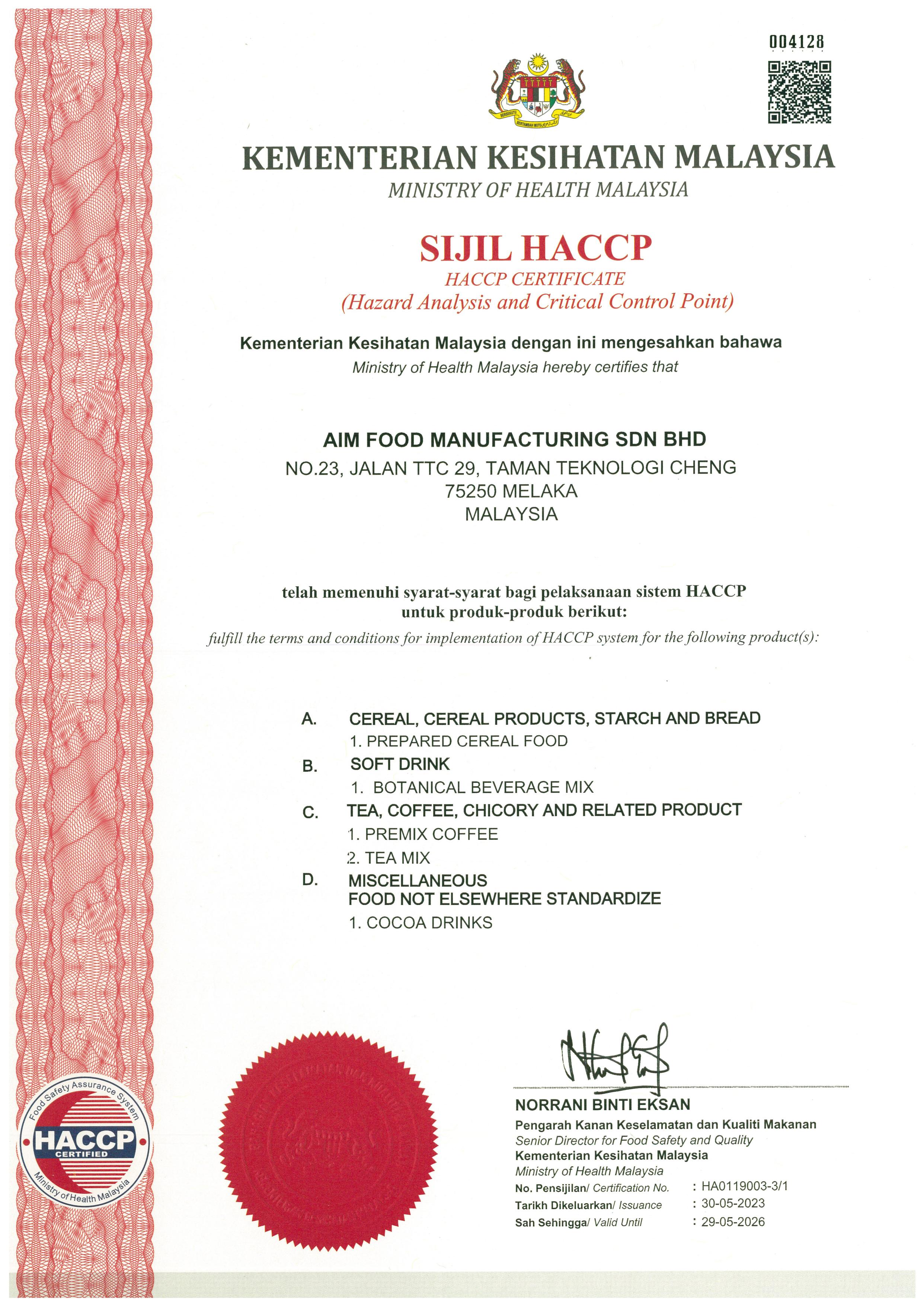 - Chứng nhận HACCP