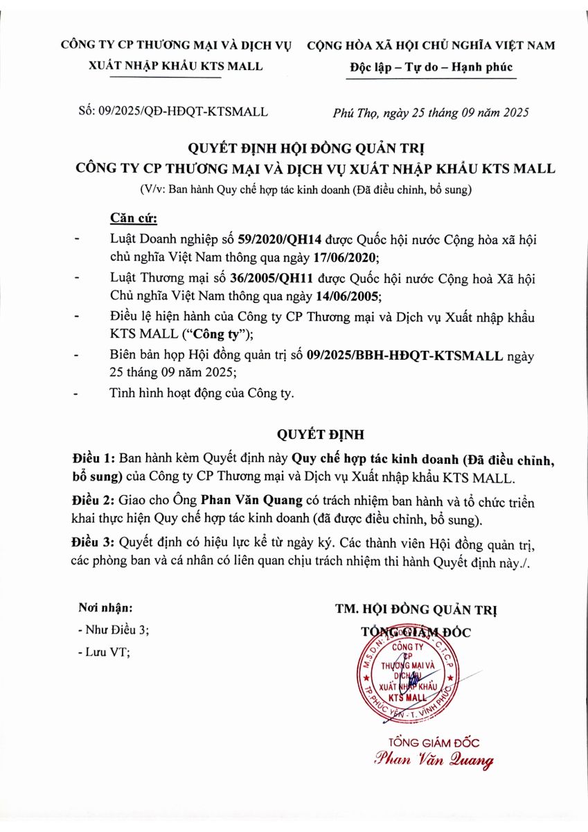 Quy chế hợp tác kinh doanh