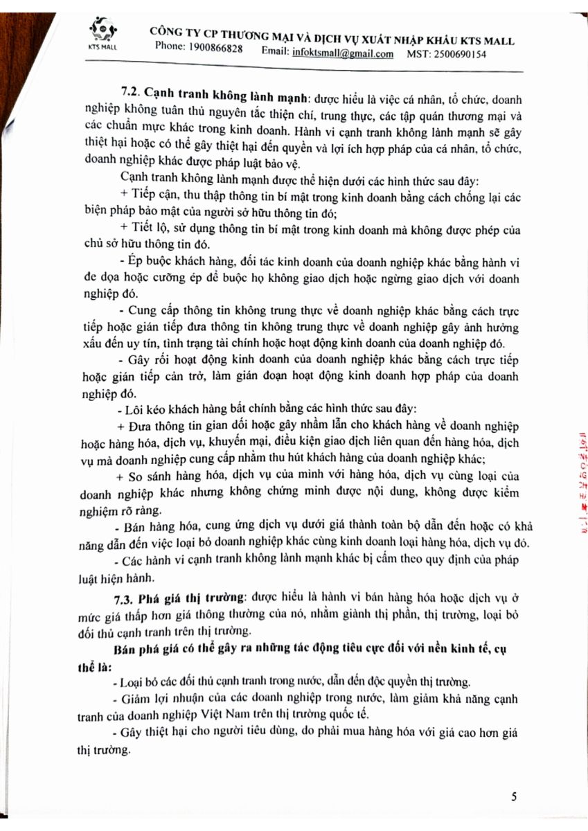Nguyên tắc, Quy định trong Kinh doanh và giới thiệu, quảng cáo sản phẩm